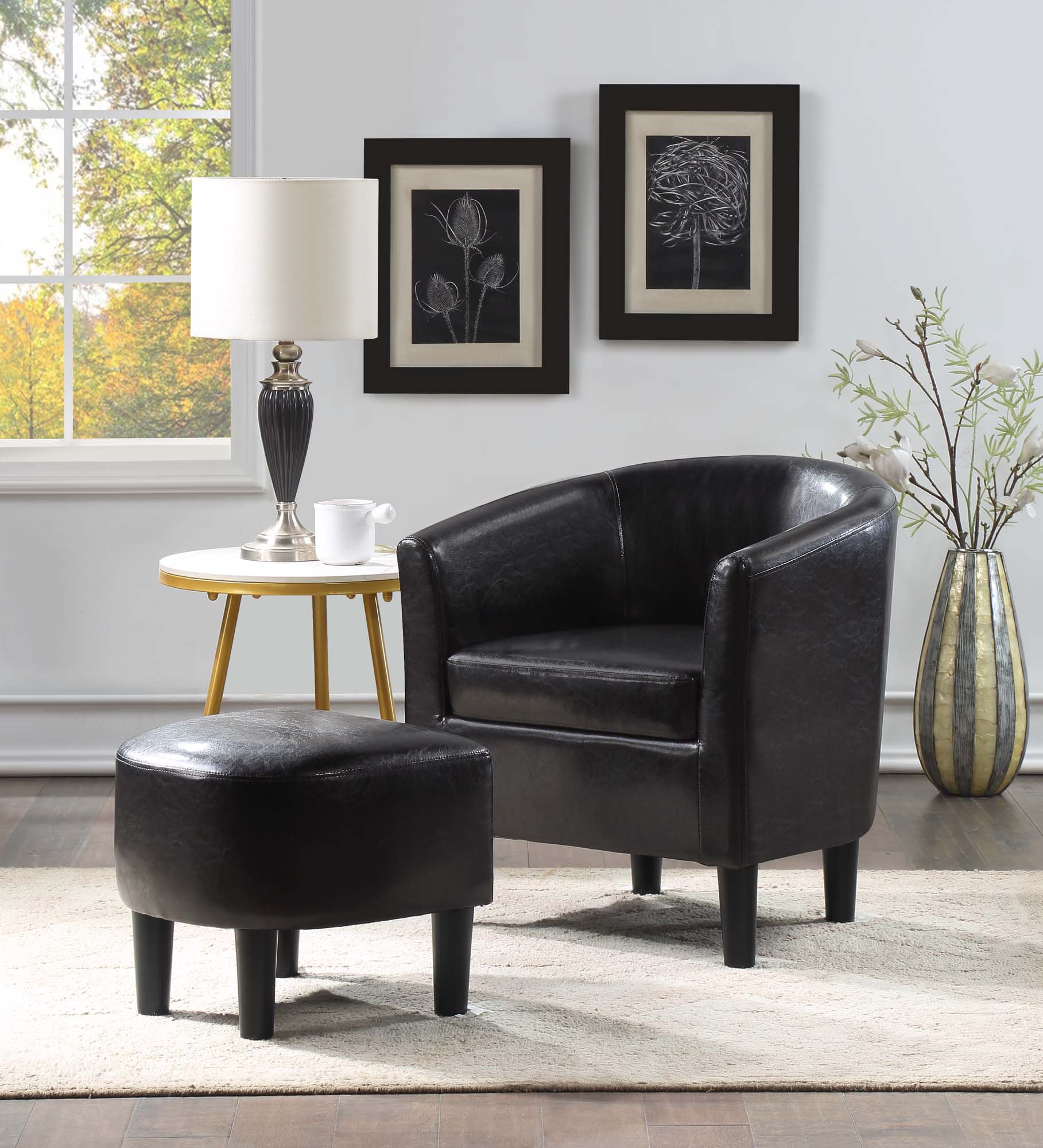 Convenience Concepts Take A Seat Churchill Accent Chair With Ottoman Black Faux Leather Walmart Com